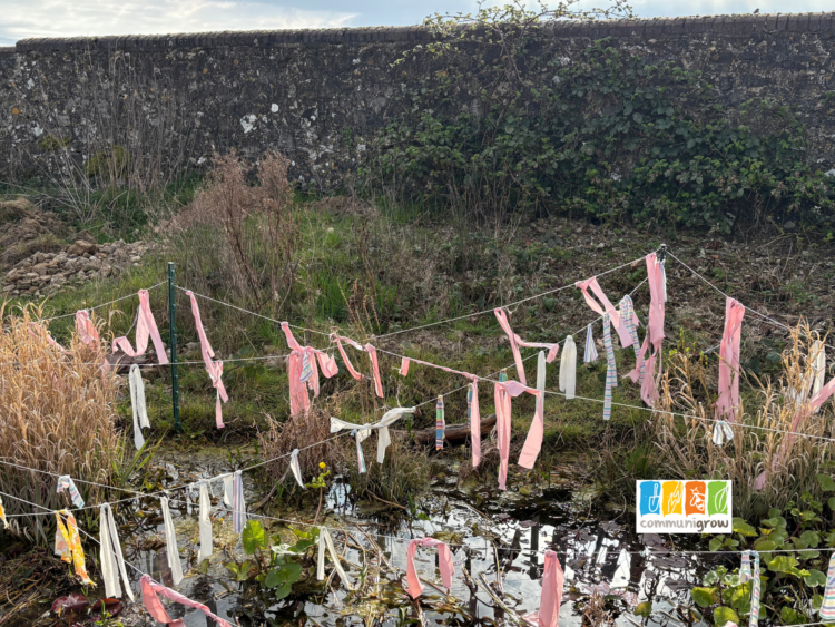 Our tour ended around the ‘Pond Project’, a fabulous space used for pond dipping, which the school groups particularly enjoy, and given the visits recently from the local geese and ducks, diving in and spoiling some potential frog guests, the children have created some lovely bunting to warn them off.